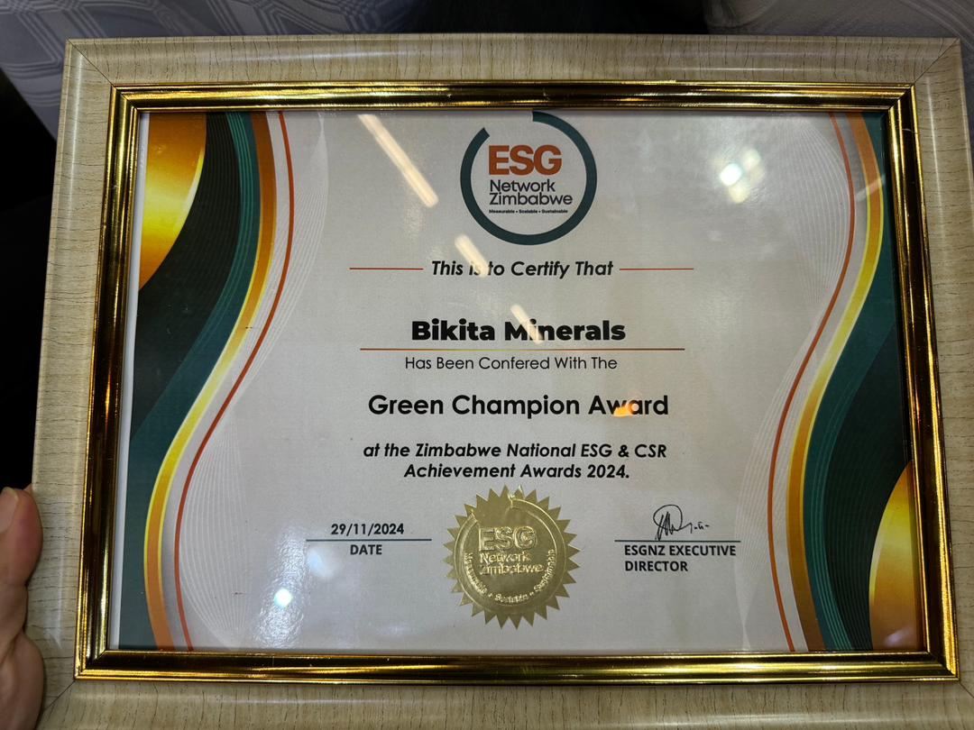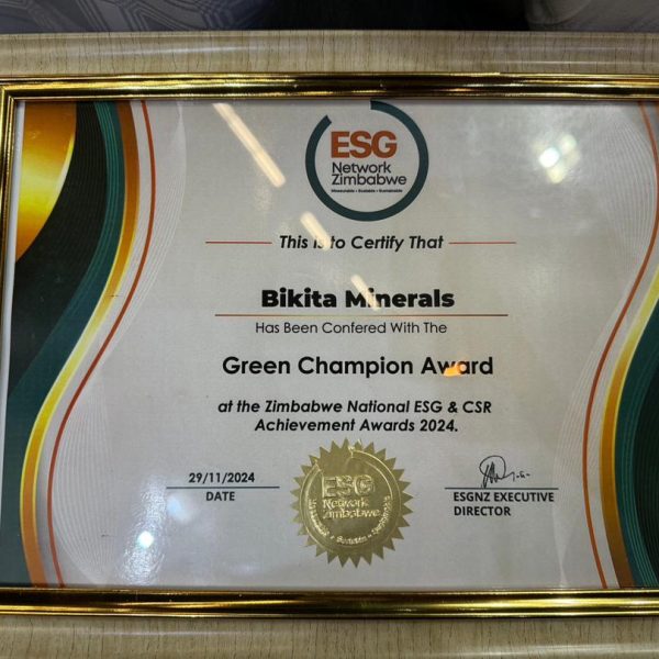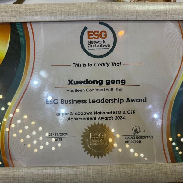 ESG Certificate for Green Champion Award of the Zimbabwe National ESG and CSR Achievement Awards 2024